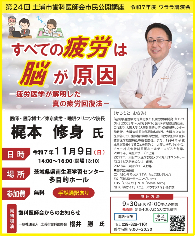 令和7年度 ウララ講演会(第24回 土浦市歯科医師会市民公開講座) |